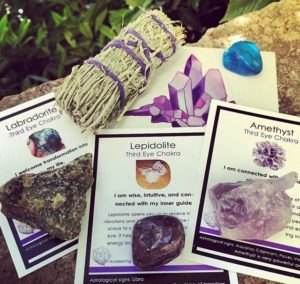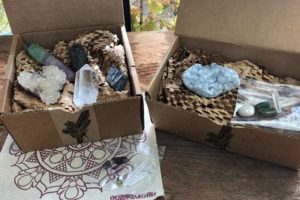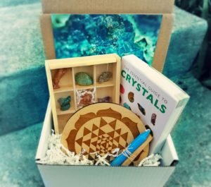 Awakening in a Box consists of subscription boxes with crystals. Each month, the subscription box includes crystals, stones, wildflowers, collectible cards, aromatherapy, energy sprays,