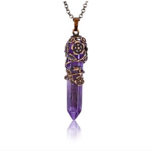 This hexagonal healing crystal pendant comes in six different colors withholding different properties. For instance, amethyst is well-known as a birthstone for February; Synthetic opalite is a perfect stone for releasing depression and making strong relation bonds. Its chain consists of stainless steel, and wrapping with a beautiful flower shape wire provides a classy look.